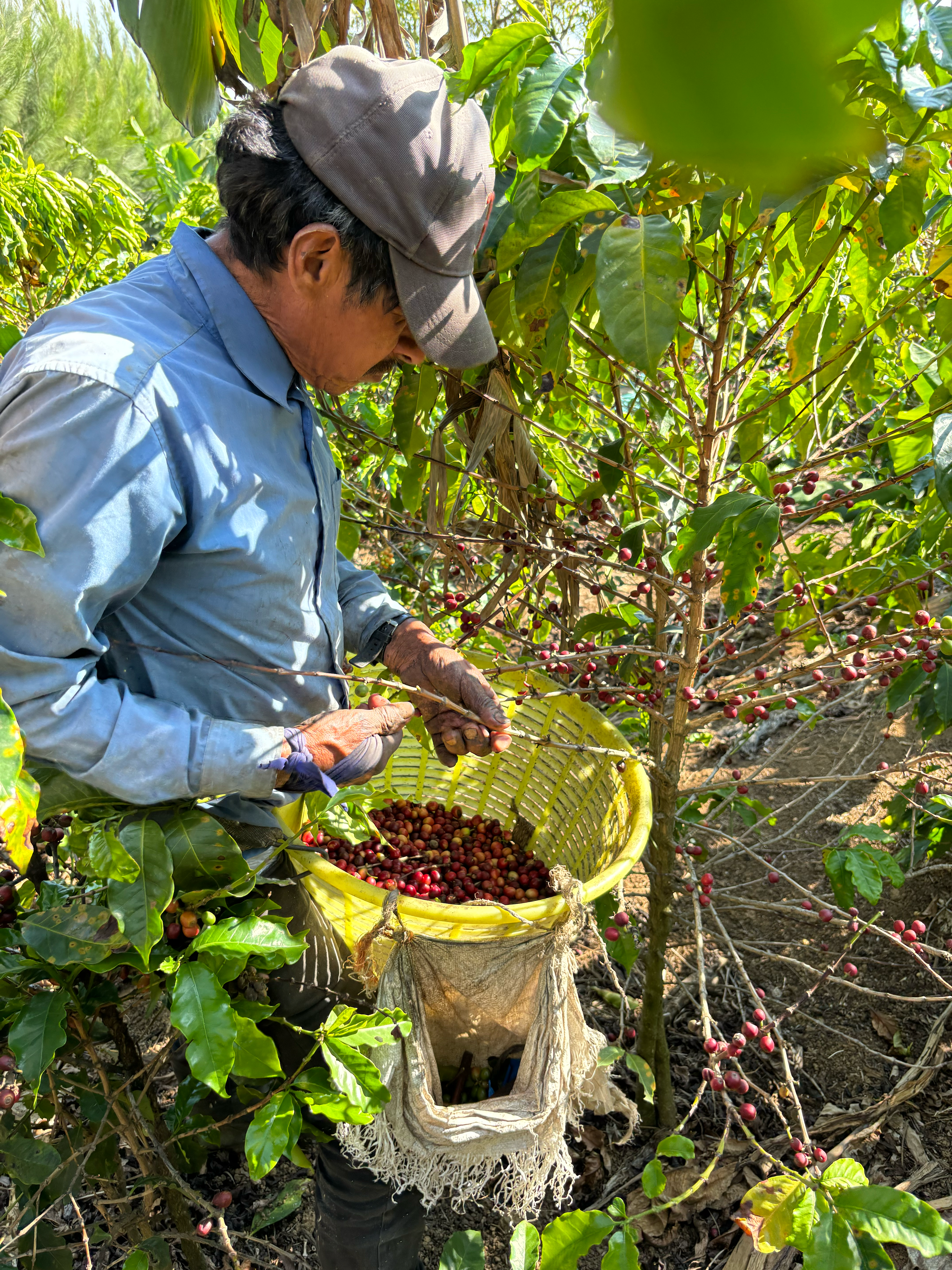 Cada cosecha comienza con nuestro equipo visitando cada microlote en persona. Junto con los productores locales, recolectamos a mano las cerezas más maduras y registramos los datos de cada lote, incluyendo altitud, ubicación y la variedad de café.